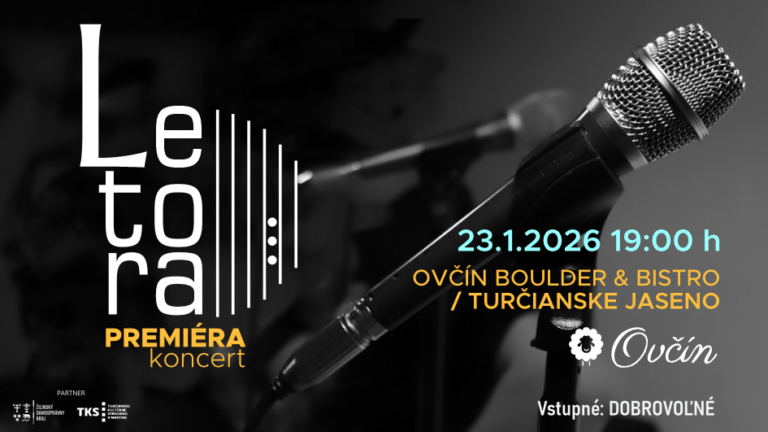 Milovníci autorskej populárnej hudby sa môžu tešiť na premiérový koncert novej hudobnej skupiny LETORA, ktorý sa uskutoční 23. januára 2026 o 19:00 hod. v priestore Ovčína Boulder & Bistro v Turčianskom Jasene. Skupina LETORA sa predstaví s vlastnou tvorbou, ktorá spája prvky populárnej hudby s jemným folkovým nádychom. Ich hudba je postavená na autentickom prejave, … Čítať ďalej LETORA koncert